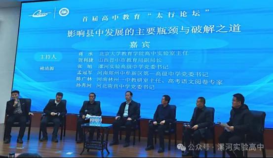 在随后的主题沙龙环节,张旭与北京大学教育学院高中实验室主任蒋承、山西晋中市教育局副局长贺利捷等专家学者,围绕“影响县中发展的主要瓶颈与破解之道”展开深度研讨。针对县域高中在育人方式、师资建设、心理健康教育等方面存在的共性问题,张旭结合该校改革实践,提出了“以对分课堂改革为突破口激活内生动力”“以班课一体化管理方式培育学生核心素养”“以感动教育促进学生心理健康教育”等务实思路,为破解高中教育发展难题提供了可借鉴的实践路径。贺利捷在发言中表示,他在今年九月份刚刚带领晋中地区的高中学校领导到漯河实验高中实地考察过,感动教育“三大纪律、十项注意”就醒目地刻在学校的文化墙上,对分课堂推行得很好,富有成效,他也正在研究推动山西晋中市的对分教育改革。